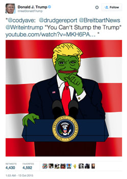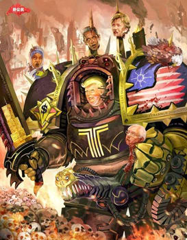 This very melodramatic piece was posted by artist Yuusuke Hori right after Trump’s inauguration. It shows Barron in sparkly bishonen form with a title that reads “My loud, annoying dad is president, so the quiet unassuming life I wanted is completely over.” It was only meant as a silly mockup cover, but because it got insanely popular, we eventually got the for-realsies The Adventures Of Barron And His Loud-Mouthed President Father, and it’s everything we’ve ever wanted.